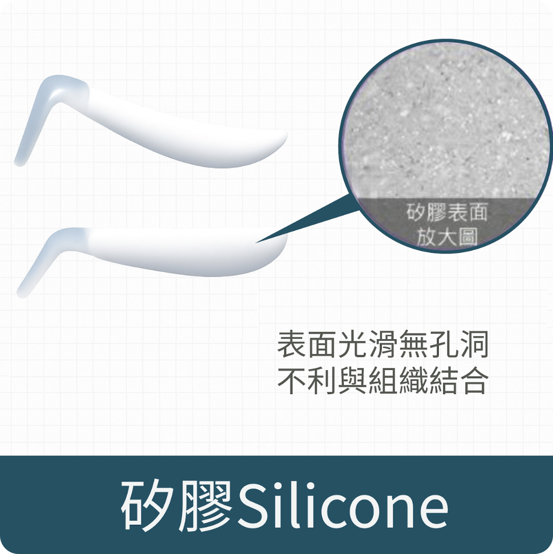 二代矽膠:改良後更柔軟貼膚、降低移位風險,外觀更自然。